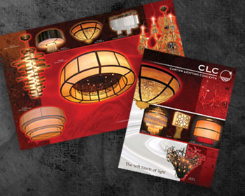 Conception graphique et mise en page d'un catalogue de 4 pages présentant des produits d'éclairage.