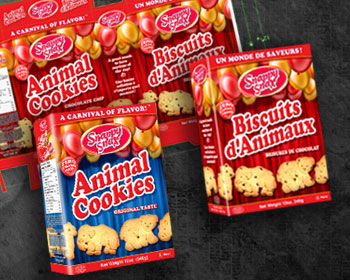 Image de marque: Conception graphique et mise en page pour deux saveurs de biscuits d'animaux.