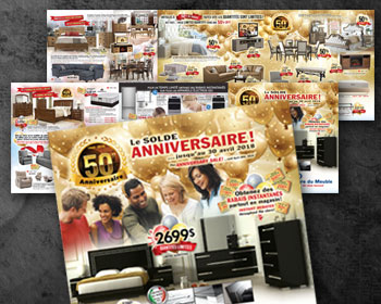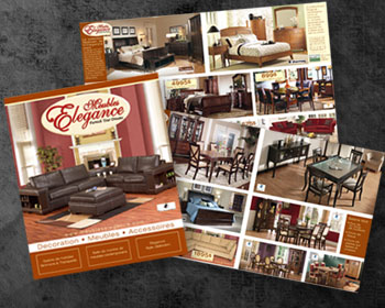 Conception graphique et mise en page d'un dépliant promotionnel Publisac avec mobilier (6 panneaux).
