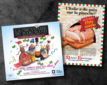 Conception graphique et mise en page de coupons-rabais de 20$, 30$ et 50$ pour plusieurs produits différents.