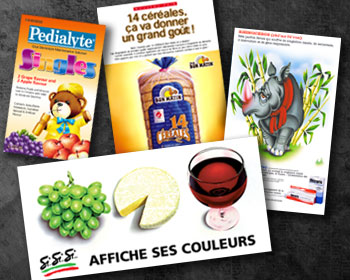 Illustrations créées pour diverses publications imprimées ainsi que des panneaux d'affichage.