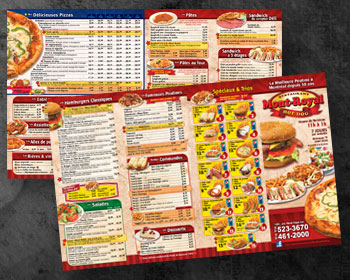 Créatif: Conception graphique et mise en page d'un menu de livraison pour un restaurant local de Montréal.