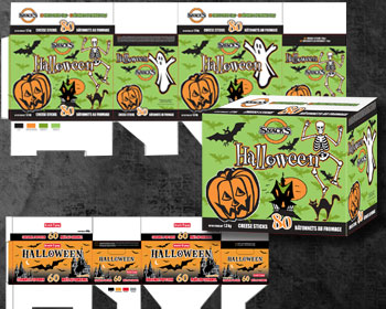 Image de marque: Conception graphique et mise en page pour l'emballage de bonbons d'Halloween.