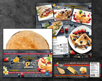 Image de marque: Conception graphique pour un emballage de crêpes (9po et 13po) et une étiquette.
