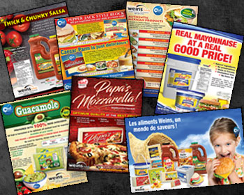 Conception graphique des feuilles de vente pour favoriser la vente de divers produits alimentaires.